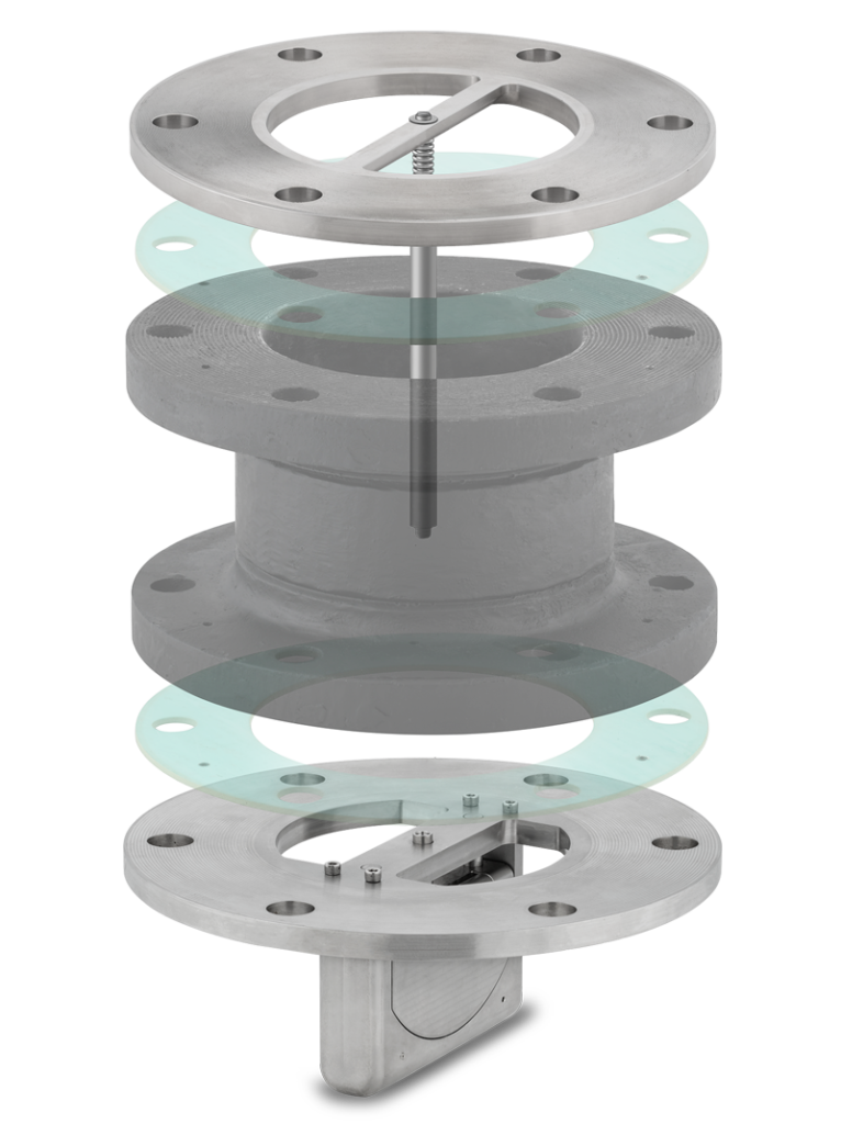 The retrofit is easily installed underneath any existing fire hydrant in any existing municipality water distribution system. The Conserventi Valve fits directly into the existing piping system by dropping it into position and retightening the bolts which attach the hydrant to the supply line so there is no need for municipalities or water districts to change existing water piping systems. The existing wet barrel fire hydrant is removed, the Conserventi Valve is installed into the existing main riser and the fire hydrant is re-installed and ready to protect against fires and water loss.